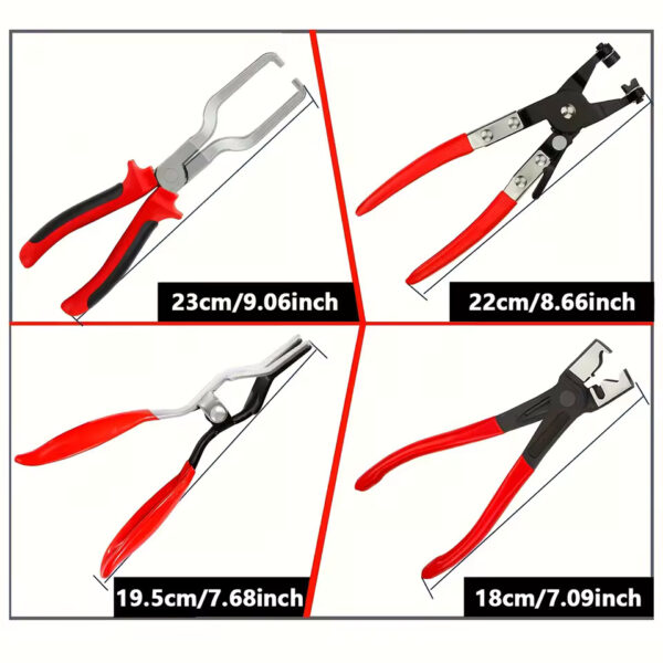 ๐Ÿ”ง Alles-in-รฉรฉn oplossing – 4 gespecialiseerde tangen voor elk type slang en klem.