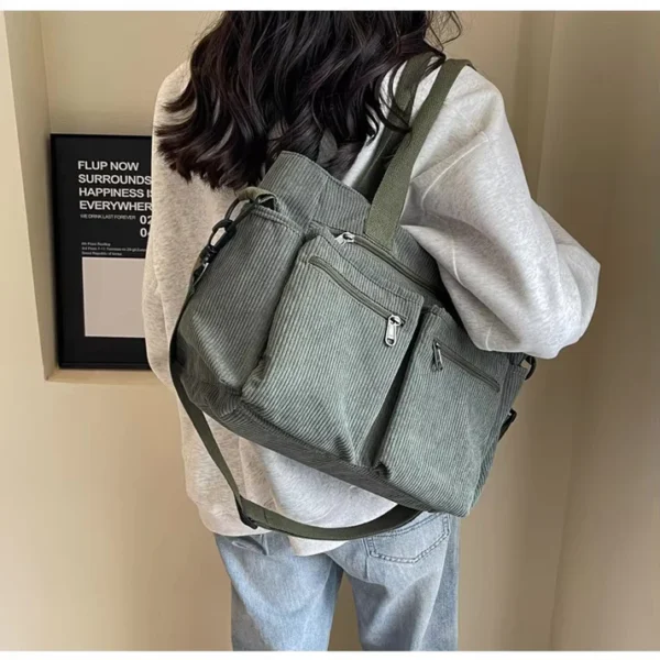 Verbeter je dagelijkse outfit met de alledaagse tas. Deze stijlvolle corduroy tas past perfect in je drukke routine. Of je nu naar je werk gaat, naar school of gewoon op stap, er is genoeg ruimte voor al je essentials terwijl hij je look verbetert.
