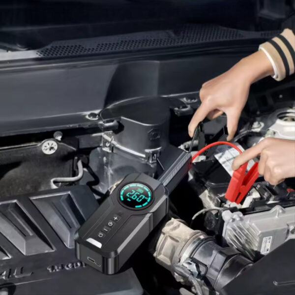 Lekke band? Lege accu? Geen probleem. Deze slimme jumpstarter voor in de auto is je alles-in-ÊÊn held op reis – hij pompt op, start op, voorziet apparaten van stroom en houdt je veilig met noodverlichting. Compact, snoerloos en altijd klaar voor gebruik.