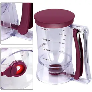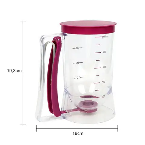 De pannenkoekenbeslagdispenser (ook ideaal voor beslag) is je nieuwe must-have keukentool voor schoon en precies gieten. Of je nu cupcakes, muffins, wafels of pannenkoeken maakt, met deze dispenser portioneer je zonder te morsen en met volledige controle. Met een brede mond voor eenvoudig vullen en een eenvoudige trekhendel om het beslag los te maken, kun je sneller klaarmaken en heb je een schoner aanrecht. De dispenser is gemaakt van transparant plastic dat geschikt is voor levensmiddelen, is veilig en duurzaam en laat je in รฉรฉn oogopslag zien hoeveel er nog over is.