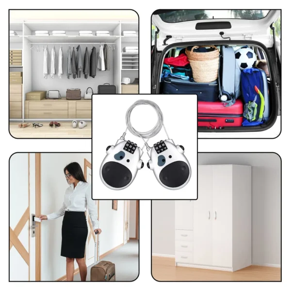 Gebouwd van zeer sterk staal en een oprolbare kabel van 70 cm biedt dit slot krachtige bescherming voor fietsen, bagage of reisbenodigdheden. Het weerbestendige ontwerp, het eenvoudige combinatiemechanisme en de compacte vorm maken het slot perfect voor gebruik buitenshuis, op reis en voor dagelijkse beveiliging – sleutels zijn niet nodig!